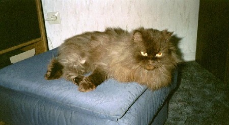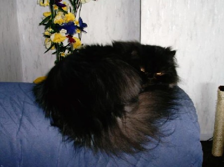 Ich bin damals ziemlich unbedarft ins nächste Tierheim und habe gesagt: Ich hätte gerne eine Wohnungskatze! Im ersten Tierheim wurde ich gleich unfreundlich abgeblockt, es gäbe nur Freigänger. OK, ich also zum nächsten Tierheim. Dort waren nicht nur die Leute, sondern auch die Unterbringung sehr viel freundlicher, aber leider gab es dort auch keine Wohnungskatzen. Nur eine frisch operierte Mieze, die zwar möglichst drin bleiben sollte, aber noch nicht sicher war, ob sie der gleicchen Meinung war. Während wir uns unterhielten, klingelte das Telefon. Während Mitarbeiterin telefonierte, beschäftigte ich mich mit den vorhandenen Katzen und hörte dann nur mit einem halben Ohr: "Ich hätte da evtl. jemanden. Darf ich ihre Telefonnummer weitergeben?" Als sie aufgelegt hatte kam sie zu mir und fragte, ob ich nicht gleich zwei Katzen nehmen wollte, die wären auch schon älter und ruhiger. Ich hab also die Telefonnummer genommen und dann von zuhause angerufen. Es war eine Familie die nach 10! Jahre ihr Perser-Pärchen abgeben wollte, weil sich der Kater mit dem neuen Hund nicht verstand. Naja und ich verstand die Leute nicht, bin aber hingefahren um sie mir anzuschauen. Was soll ich sagen, ich bin mit zwei liebenswerten Kuschelpersern + Zubehör nach Hause gefahren! So kam ich zu meinen ersten Katzen: